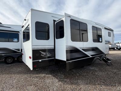 With any Eagle SLE fifth wheel by Jayco, you will enjoy a lighter tow weight, high-end finishes, and the same quality construction you've come to expect from Jayco! There is an Alpha Ply TPO roof membrane, a fully enclosed and heated underbelly, plus Stronghold VBL walls for added durability. There is also a rear 2" towing receiver outside, along with metal slam latch baggage doors, MORryde Step Above entry steps, and a Winegard Air 360 antenna with router prep if you want to stay connected as you camp. Once inside you'll enjoy the handcrafted door/drawer fronts, shower skylight, and residential vinyl flooring throughout with no carpet for an easier clean. The on-demand water heater, 30K BTU furnace, and 15K BTU "Whisper Quiet" A/C will ensure your comfort, and the Overland 1 Solar Package will provide off-grid capabilities!