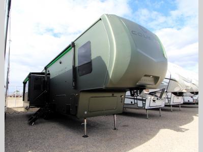 Spend more time having fun and less time worrying about your RV with the Keystone Cougar fifth wheel! These units have all that you will need for excellent vacations. The interior comes with 5/8" one-piece DynaSpan® flooring, tall slide outs for added comfort and head room, night roller shades throughout, and residential, shaker style hardwood cabinet doors and drawers. You will also enjoy decorative crown molding, a 5,500 BTU electric fireplace with thermostat control and remote, and a Max Air exhaust fan with rain sensor. The exterior is also fully outfitted with a convenience center, friction-hinge entry door, electric four-point auto leveling system, and slam-latch baggage doors. Each model is available with the optional Hero Edition. By choosing this edition, you can help support our nation's heros and their families by contributing to the Wounded Warrior Project. This optional package features an industry exclusive full-body paint matte finish, frameless windows, a glass entry door, blackout rims, and green LED exterior accent lighting; see dealer for more details!